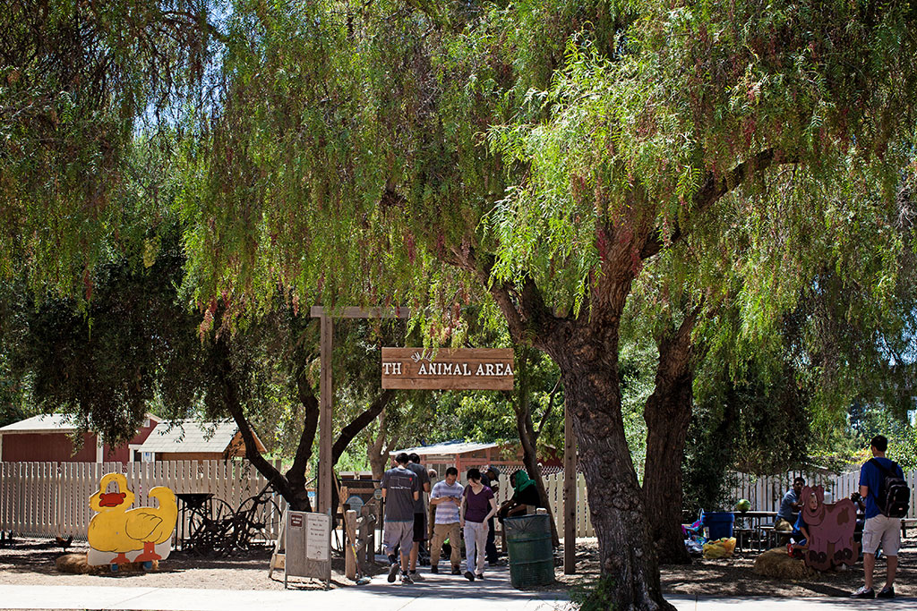 Anyway, a couple of weeks ago(? I'm losing track of time!), we took Mr Toddler to Emma Prusch Farm Park. It was sort of a continuation of checking out these awesome parks in SF and surrounding areas. It was about an hour's drive away from SF, and for anyone who knows Sydney, it was a bit like driving from the CBD to Penrith. The weather difference was similar as well: we left a cool, temperate SF and ended up in a very hot San Jose. Which sucked because I hate hot weather, and we probably would have hung around a bit longer if it hadn't been so hot. But the park itself is pretty cool, and I couldn't think of anything similar in Sydney. Aside from an awesome playground, it's basically a playground crossed with a little farm. I think its intention is to show kids what country life is like a bit. There are multiple picnic areas, an animal area that's home to some goats, chickens etc., a farm house, a barn and some gardens. There are also chickens just wandering around the place of their own freewill (clearly the owners have a lot of trust in people!).